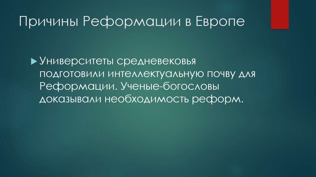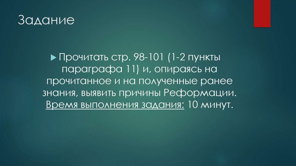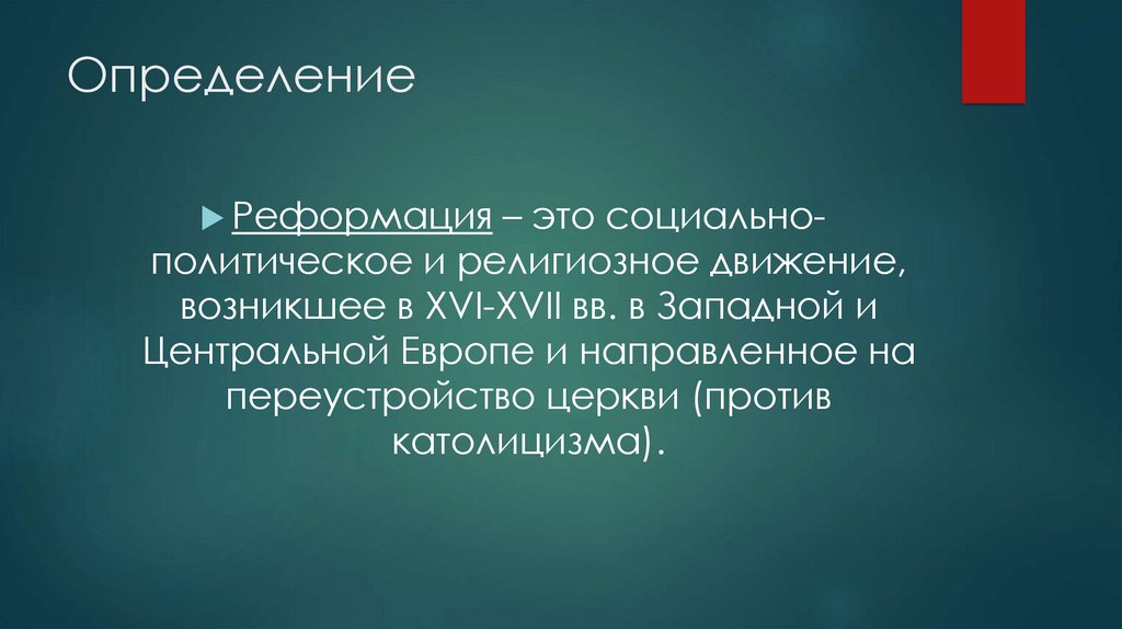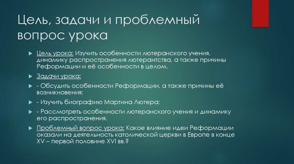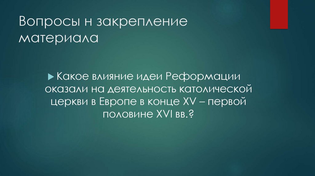 Проблемный вопрос урока: Какое влияние идеи Реформации