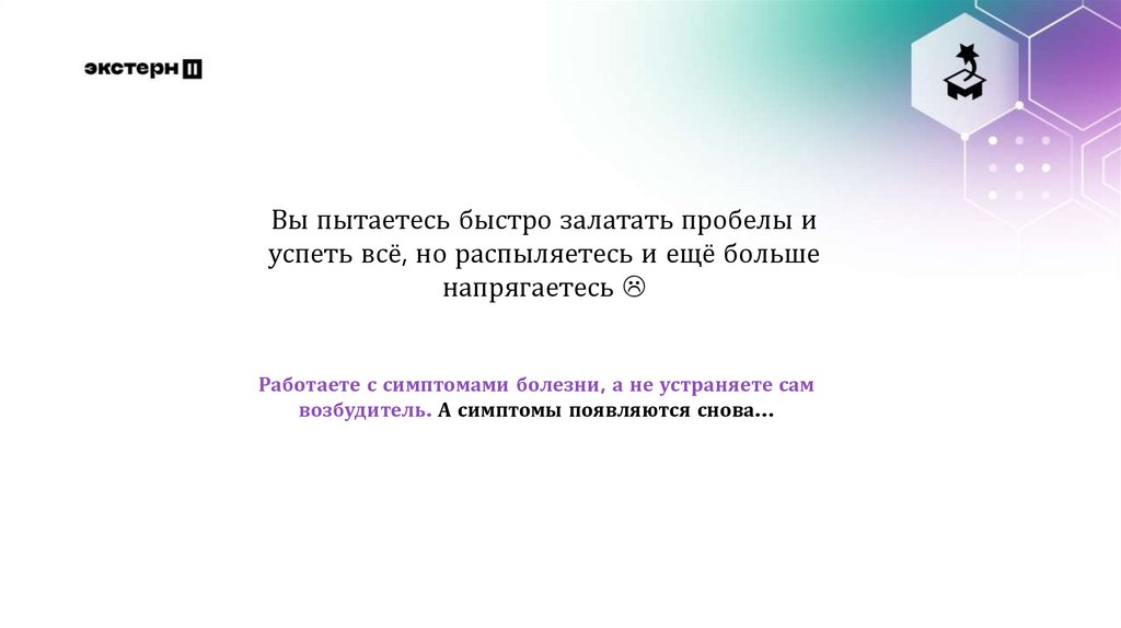 Вы пытаетесь быстро залатать пробелы иуспеть всё, но распыляетесь и ещё больше