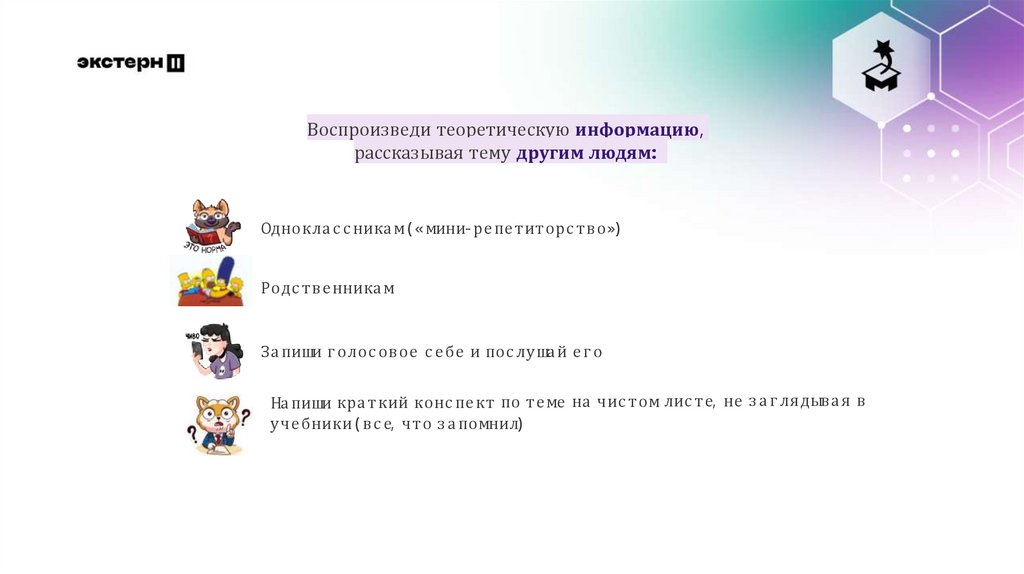 Воспроизведи теоретическую информацию,рассказывая тему другим людям: