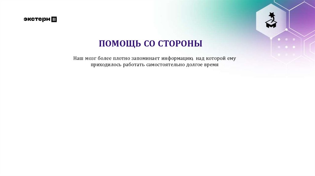 ПОМОЩЬ СО СТОРОНЫНаш мозг более плотно запоминает информацию, над которой ему