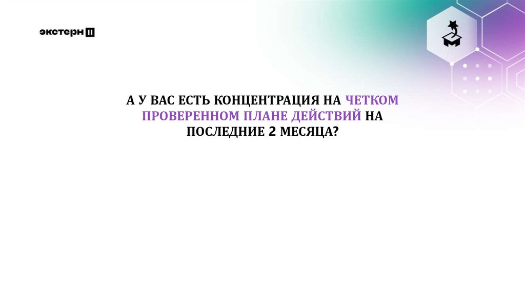 А У ВАС ЕСТЬ КОНЦЕНТРАЦИЯ НА ЧЕТКОМПРОВЕРЕННОМ ПЛАНЕ ДЕЙСТВИЙ НА