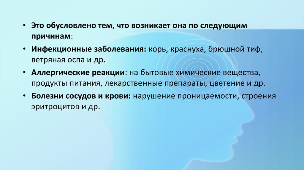 • Это обусловлено тем, что возникает она по следующимпричинам: