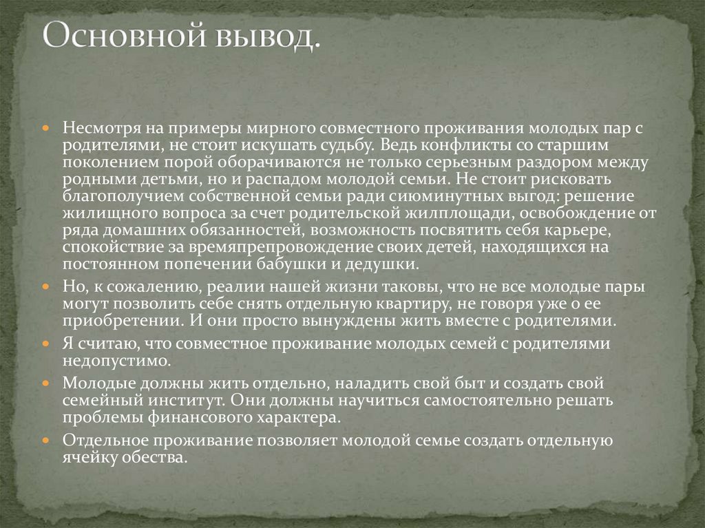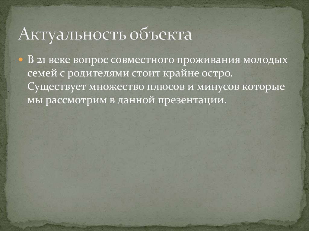 В 21 веке вопрос совместного проживания молодыхсемей с родителями стоит крайне остро.