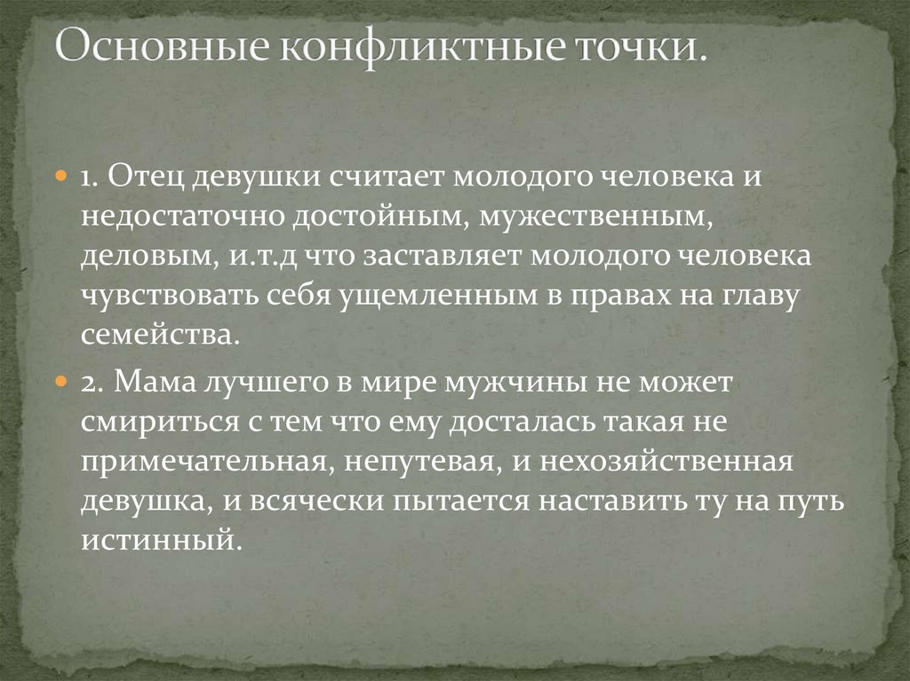 1. Отец девушки считает молодого человека инедостаточно достойным, мужественным,