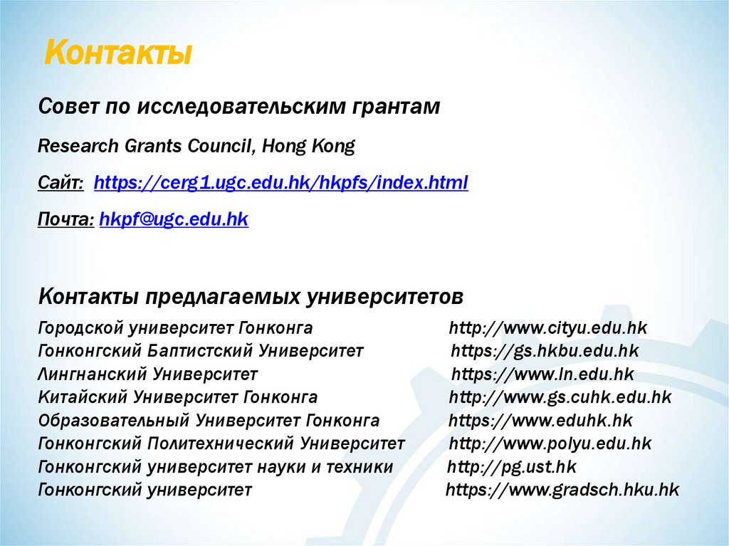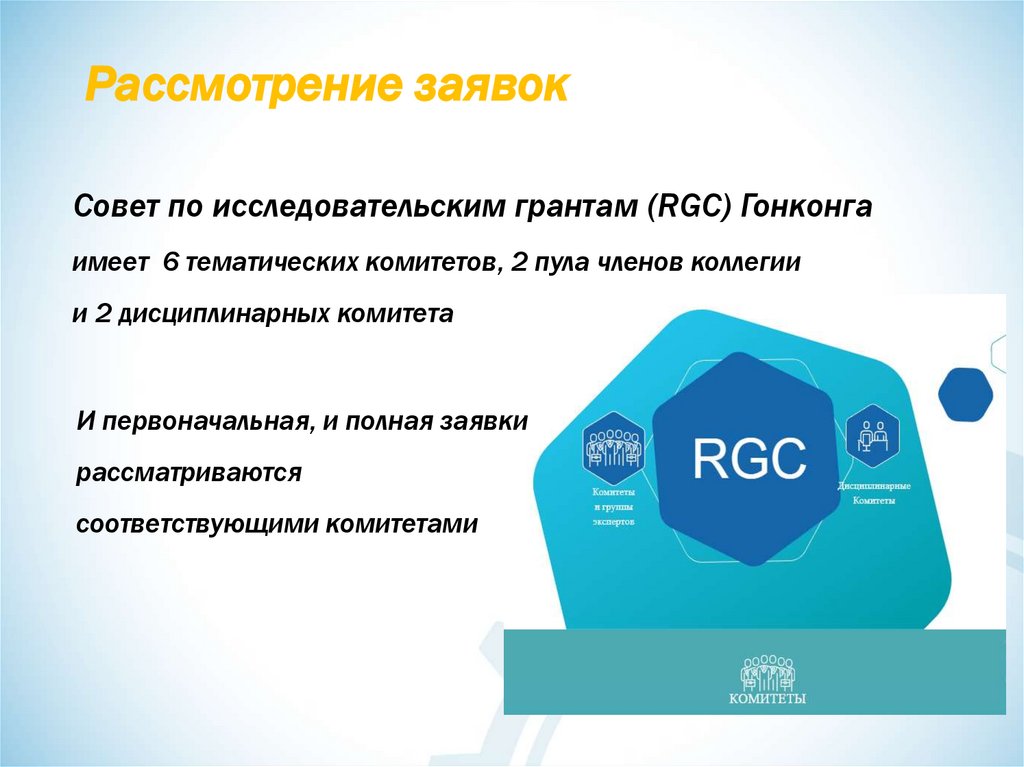 Рассмотрение заявокСовет по исследовательским грантам (RGC) Гонконга