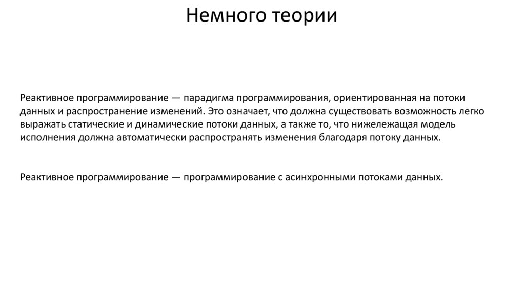 Немного теорииРеактивное программирование — парадигма программирования, ориентированная на потоки