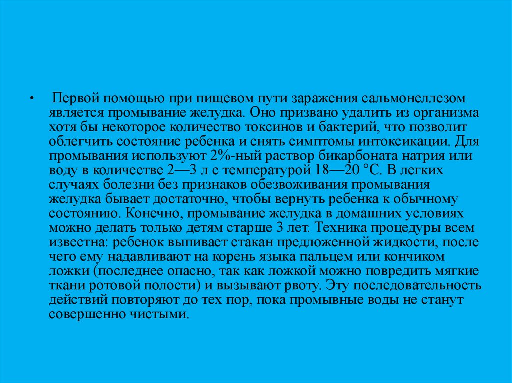 Первой помощью при пищевом пути заражения сальмонеллезом