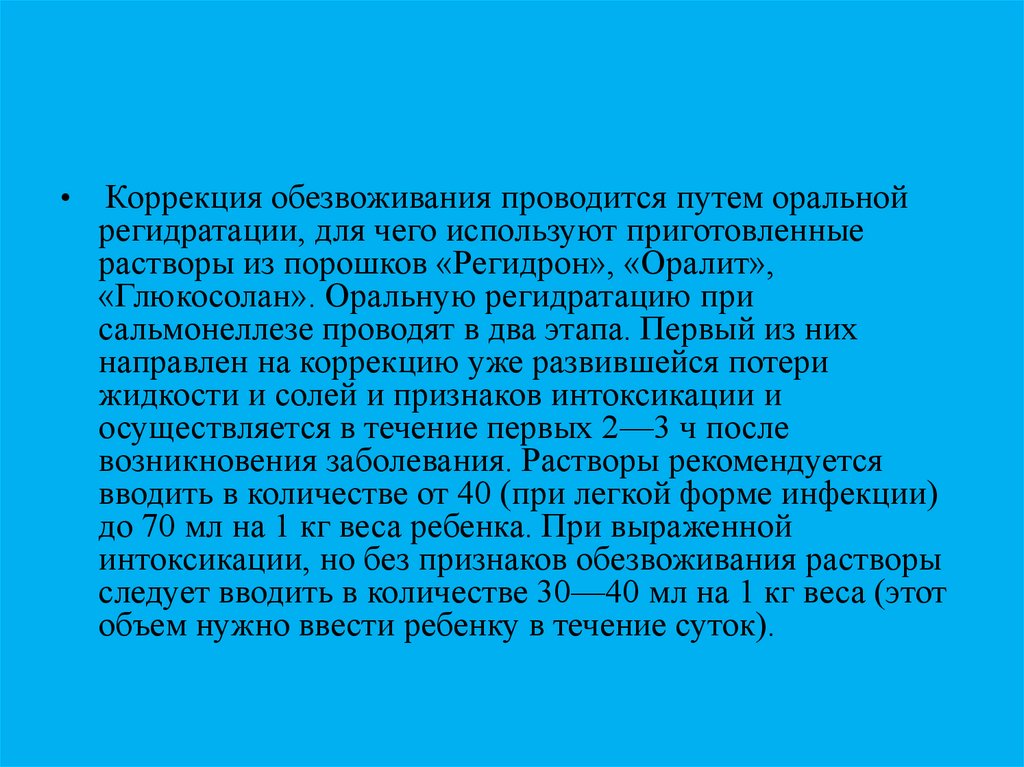 Коррекция обезвоживания проводится путем оральной