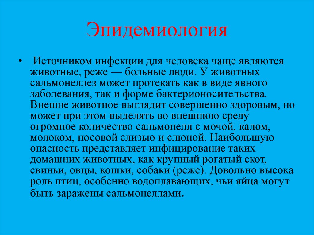 Эпидемиология• Источником инфекции для человека чаще являются