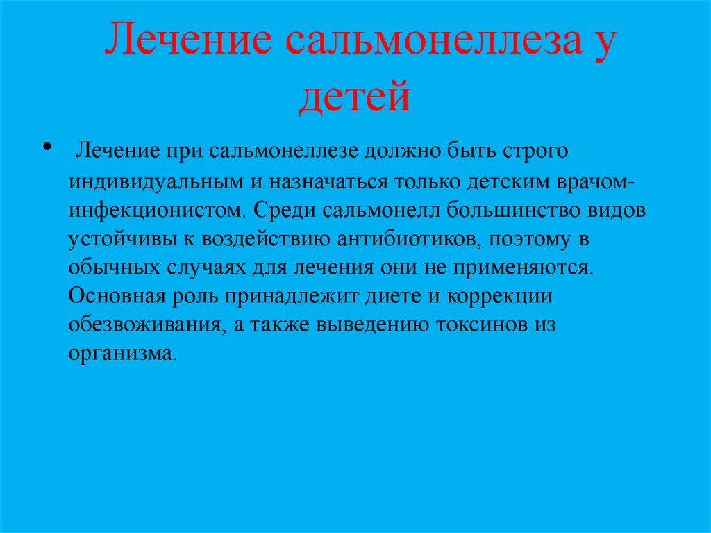 индивидуальным и назначаться только детским врачоминфекционистом. Среди сальмонелл большинство видов
