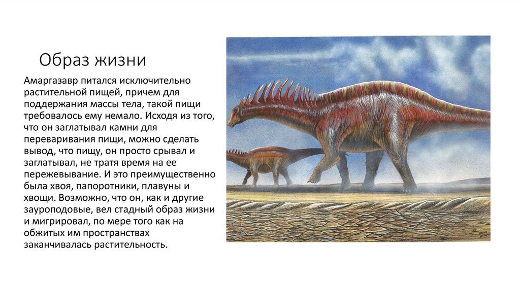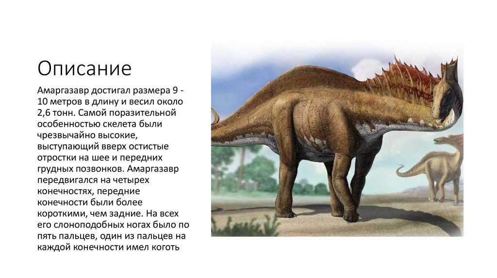 ОписаниеАмаргазавр достигал размера 9 10 метров в длину и весил около