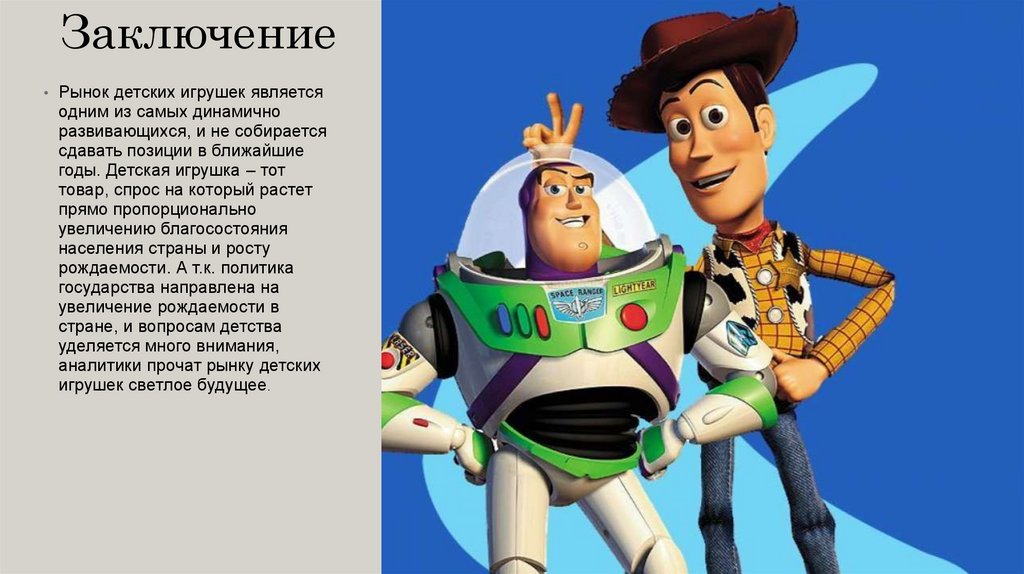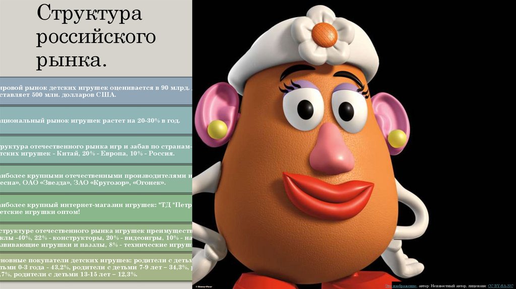 ировой рынок детских игрушек оценивается в 90 млрд. долларов. Рынок РФ оставляет 500 млн. долларов США.