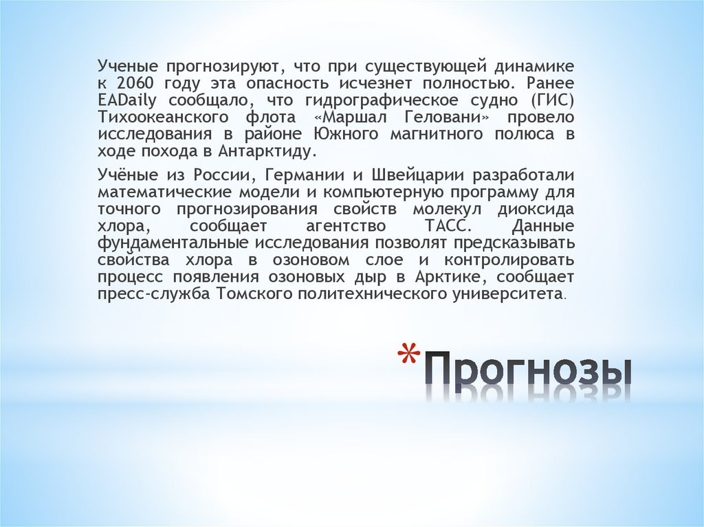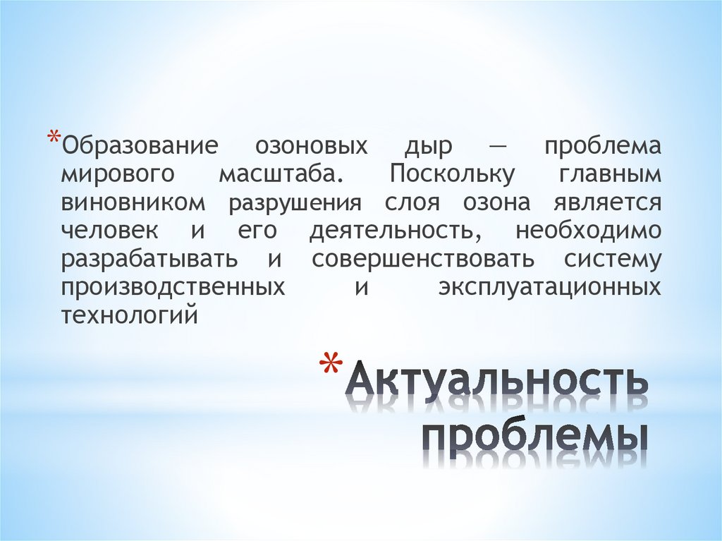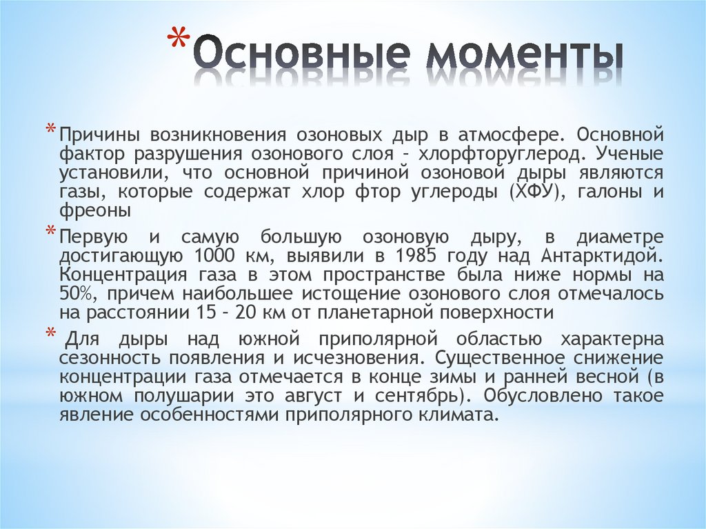 фактор разрушения озонового слоя – хлорфторуглерод. Ученые