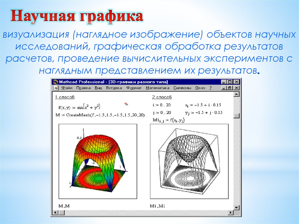 визуализация (наглядное изображение) объектов научныхисследований, графическая обработка результатов