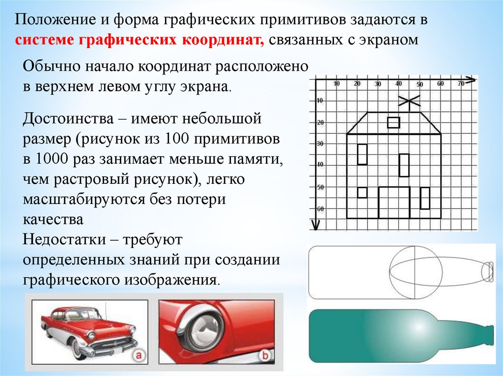 Положение и форма графических примитивов задаются всистеме графических координат, связанных с экраном
