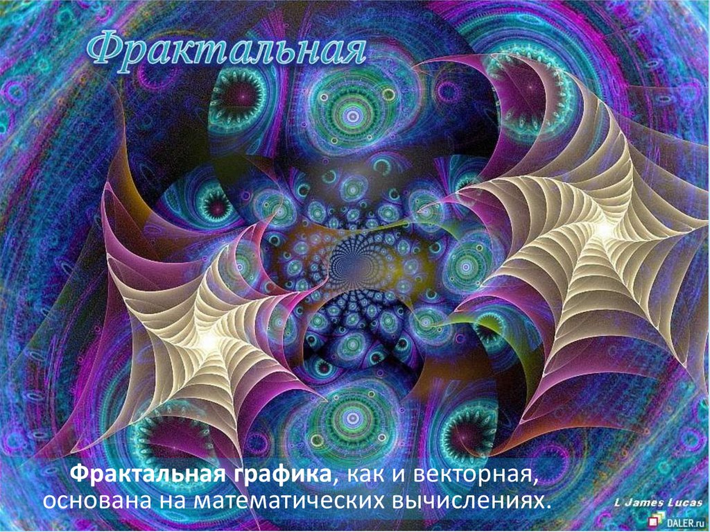 Фрактальная графика, как и векторная,основана на математических вычислениях.