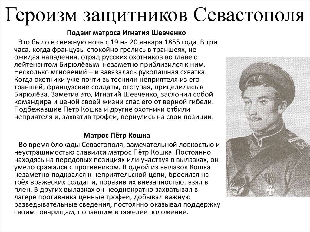 Героизм защитников СевастополяПодвиг матроса Игнатия Шевченко
