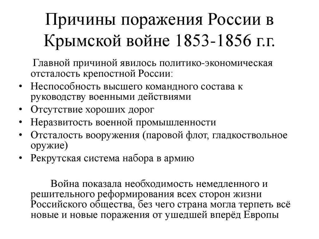 Причины поражения России вКрымской войне 1853-1856 г.г.