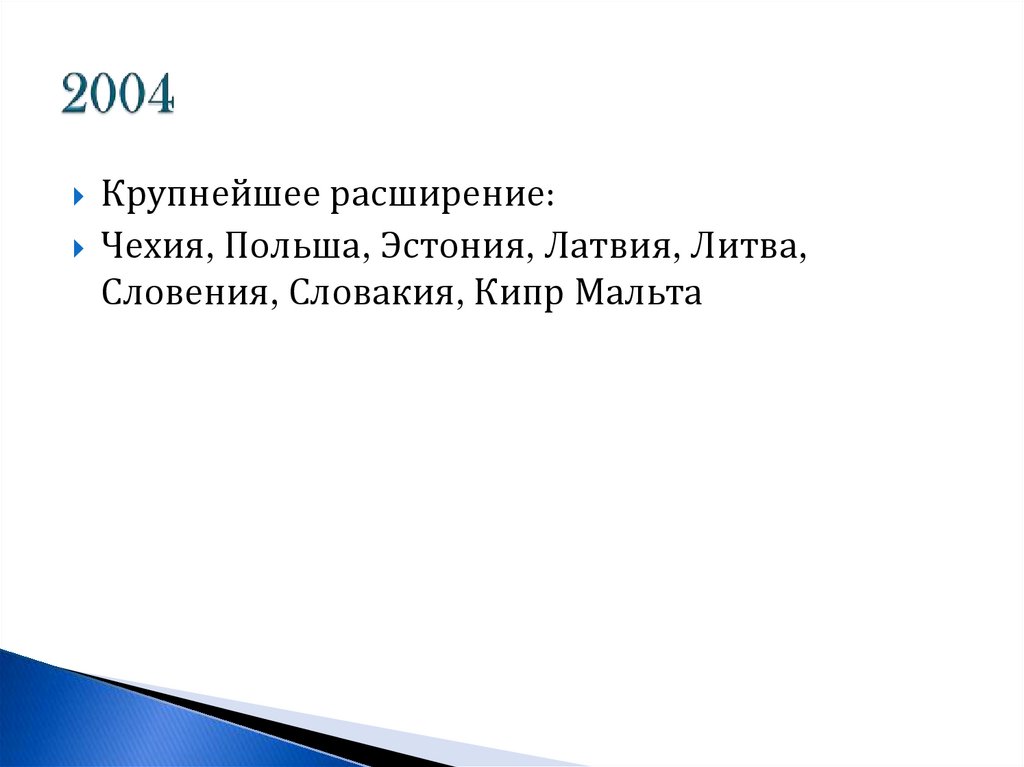 Крупнейшее расширение:Чехия, Польша, Эстония, Латвия, Литва,