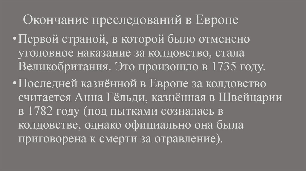 Окончание преследований в Европе• Первой страной, в которой было отменено