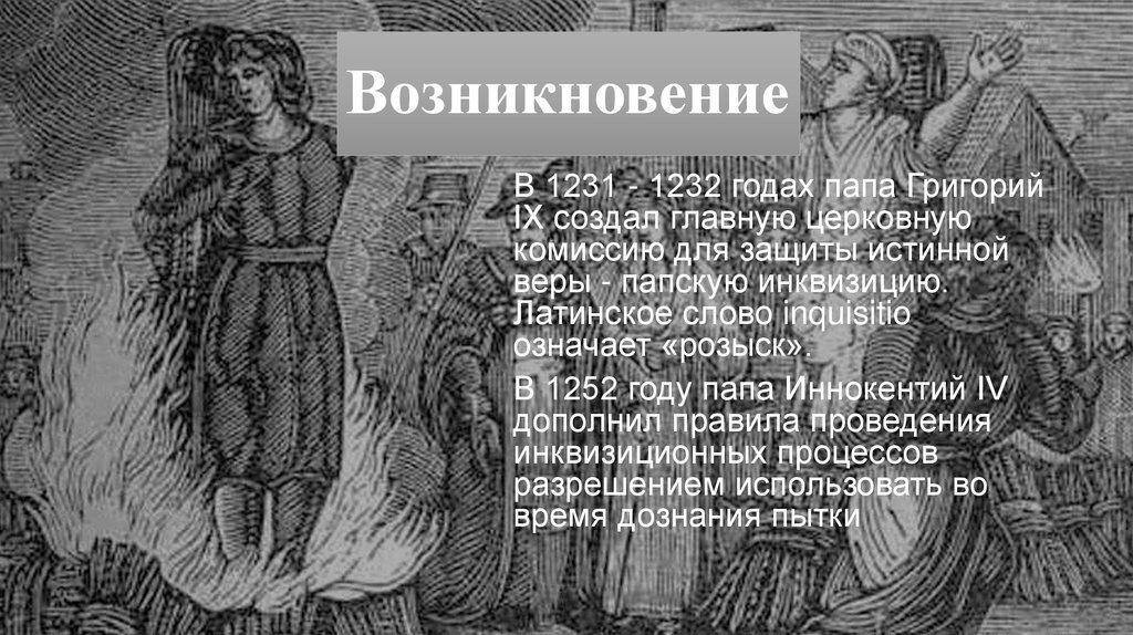 ВозникновениеВ 1231 - 1232 годах папа Григорий