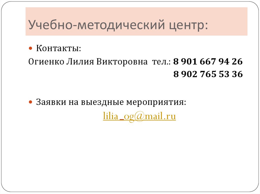 Огиенко Лилия Викторовна тел.: 8 901 667 94 26