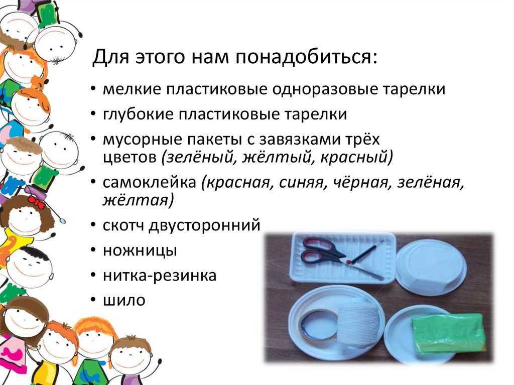Для этого нам понадобиться:• мелкие пластиковые одноразовые тарелки