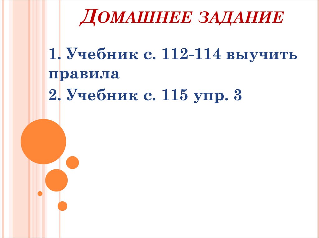 ДОМАШНЕЕ ЗАДАНИЕ1. Учебник с. 112-114 выучить