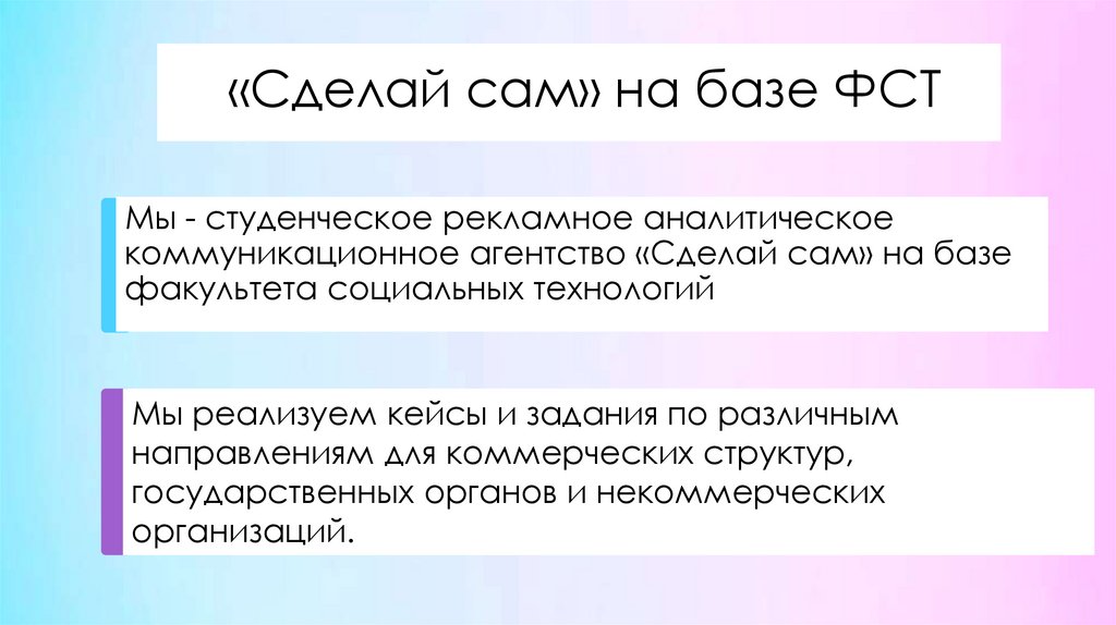 «Сделай сам» на базе ФСТМы - студенческое рекламное аналитическое