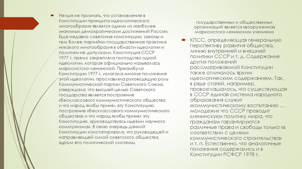 Нельзя не признать, что установление вКонституции принципа идеологического