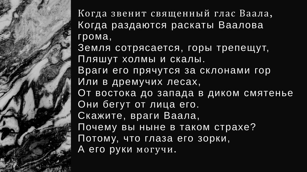 Когда звенит священный глас Ваала,Когда раздаются раск аты Ваалова
