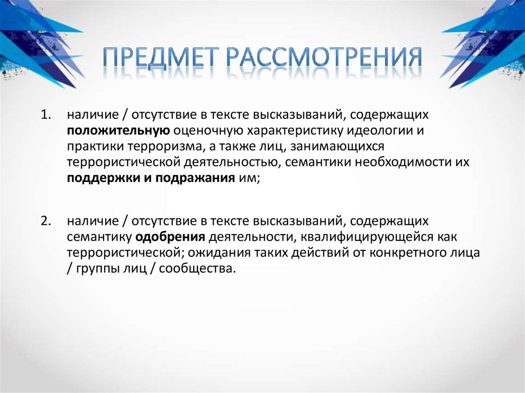 1.наличие / отсутствие в тексте высказываний, содержащих