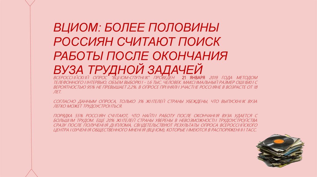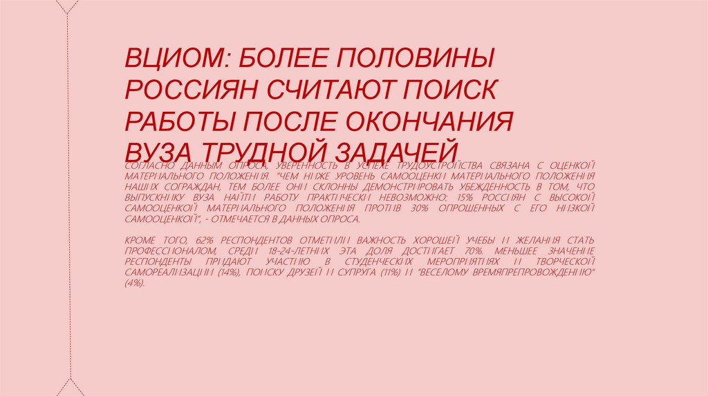 ПОРЯДКА 55% РОССИЯН СЧИТАЮТ, ЧТО НАЙТИ РАБОТУ ПОСЛЕ ОКОНЧАНИЯ ВУЗА УДАЕТСЯ С