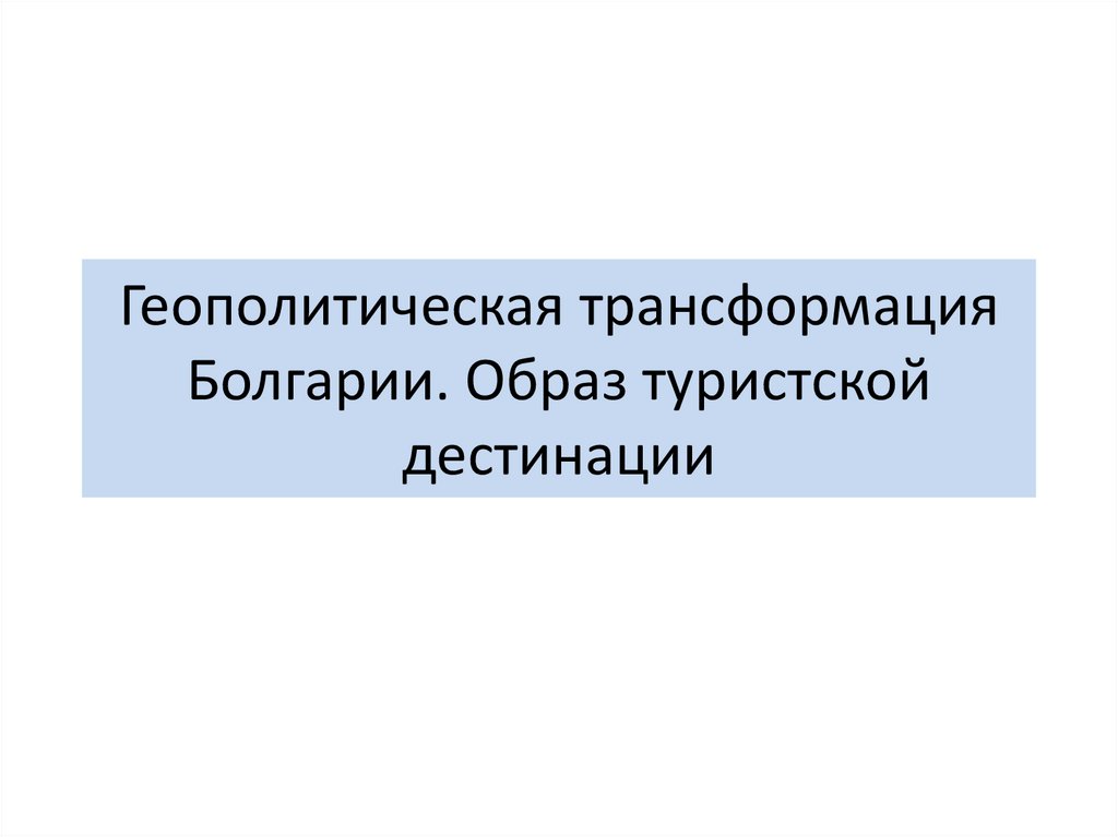 Геополитическая трансформация Болгарии. Образ туристской дестинации