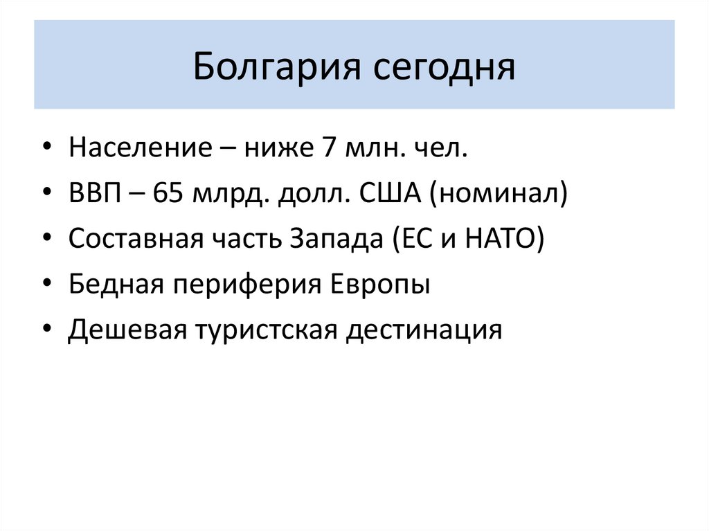 Болгария сегодняНаселение – ниже 7 млн. чел.