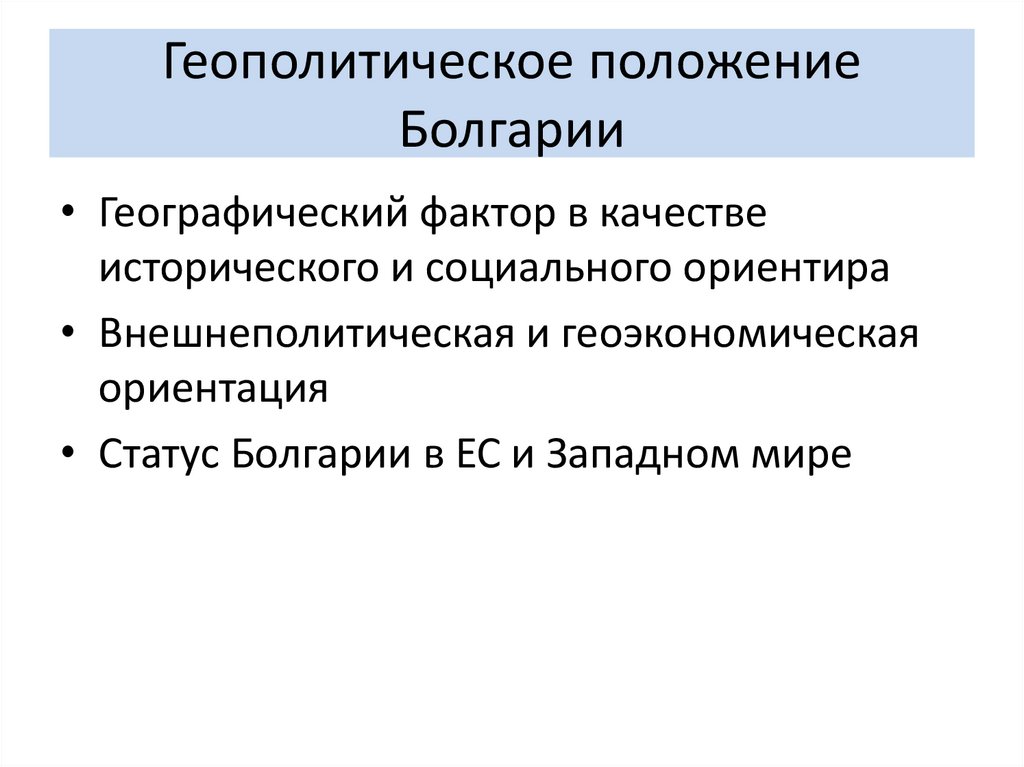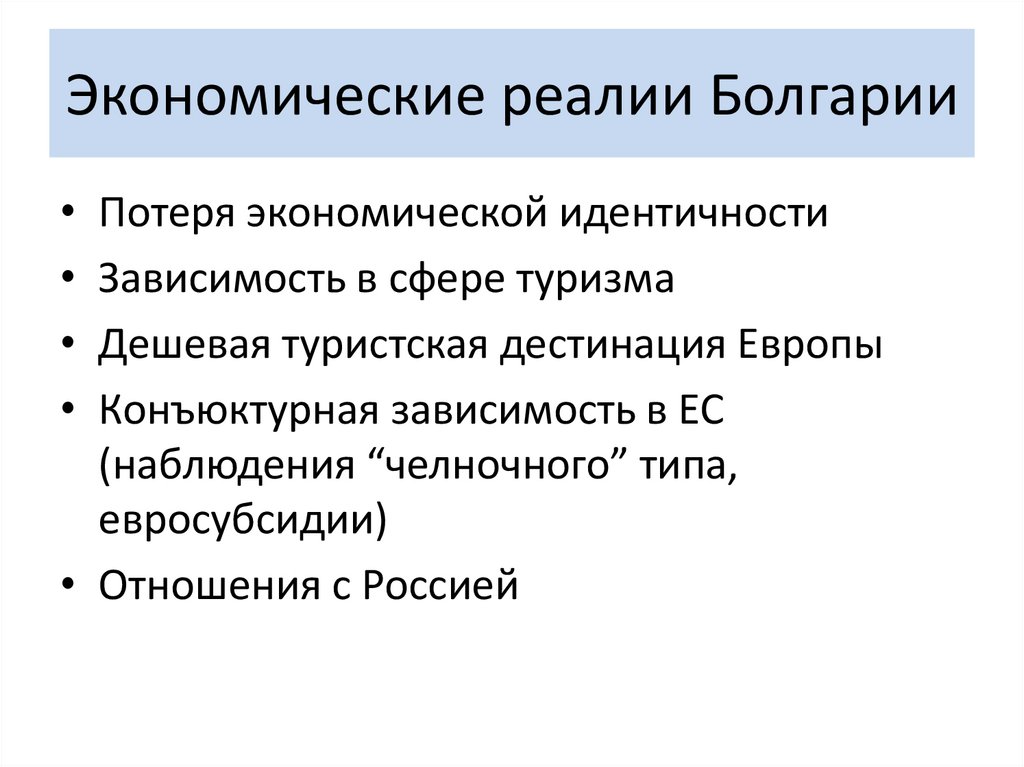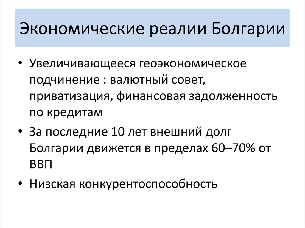 Экономические реалии Болгарии• Увеличивающееся геоэкономическое