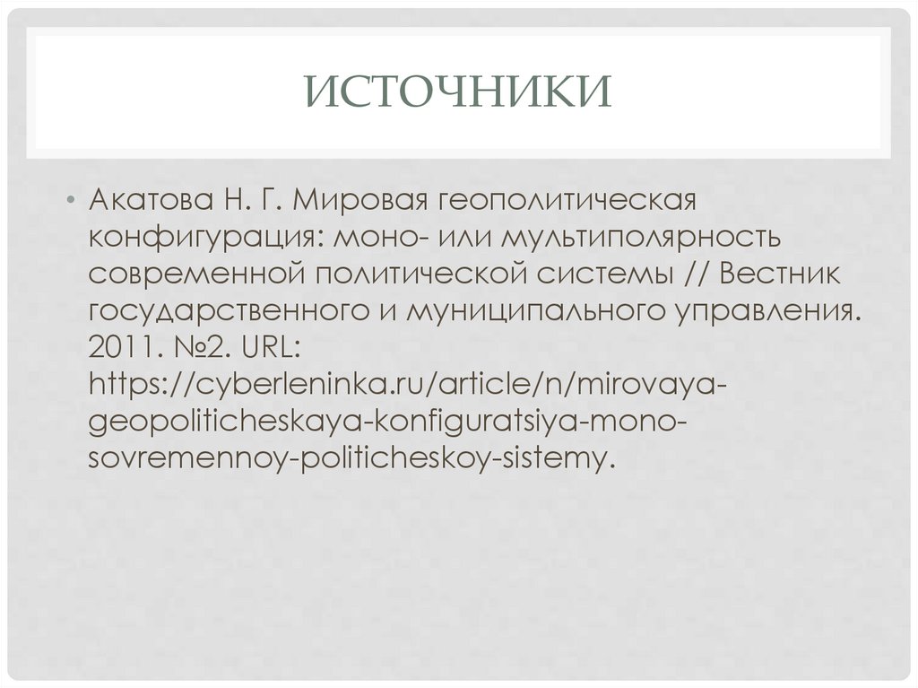 ИСТОЧНИКИ• Акатова Н. Г. Мировая геополитическая