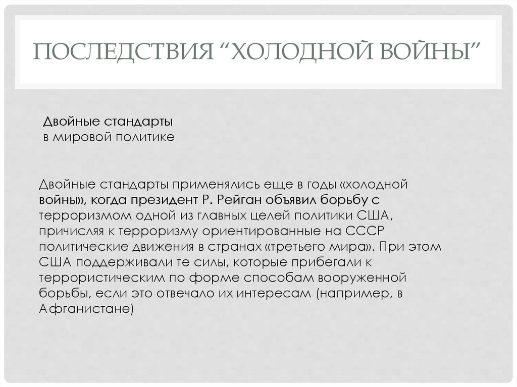 ПОСЛЕДСТВИЯ “ХОЛОДНОЙ ВОЙНЫ”Двойные стандарты