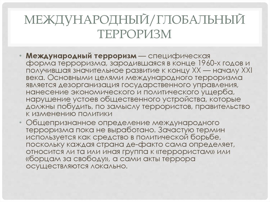 МЕЖДУНАРОДНЫЙ/ГЛОБАЛЬНЫЙТЕРРОРИЗМ