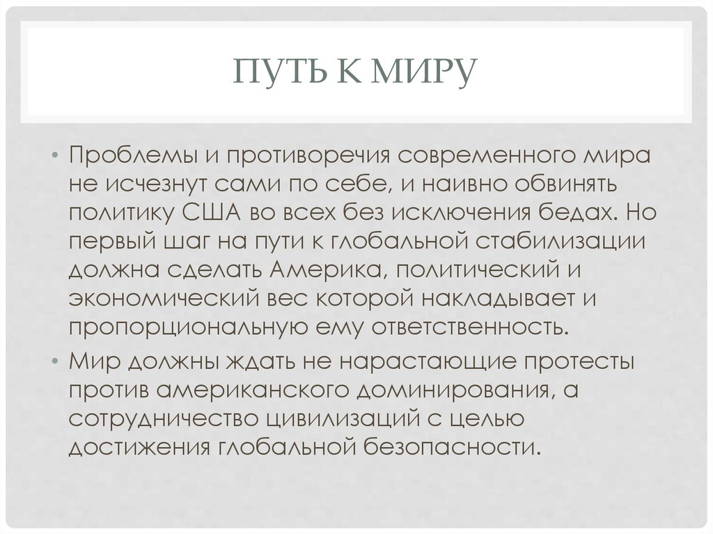 ПУТЬ К МИРУ• Проблемы и противоречия современного мира