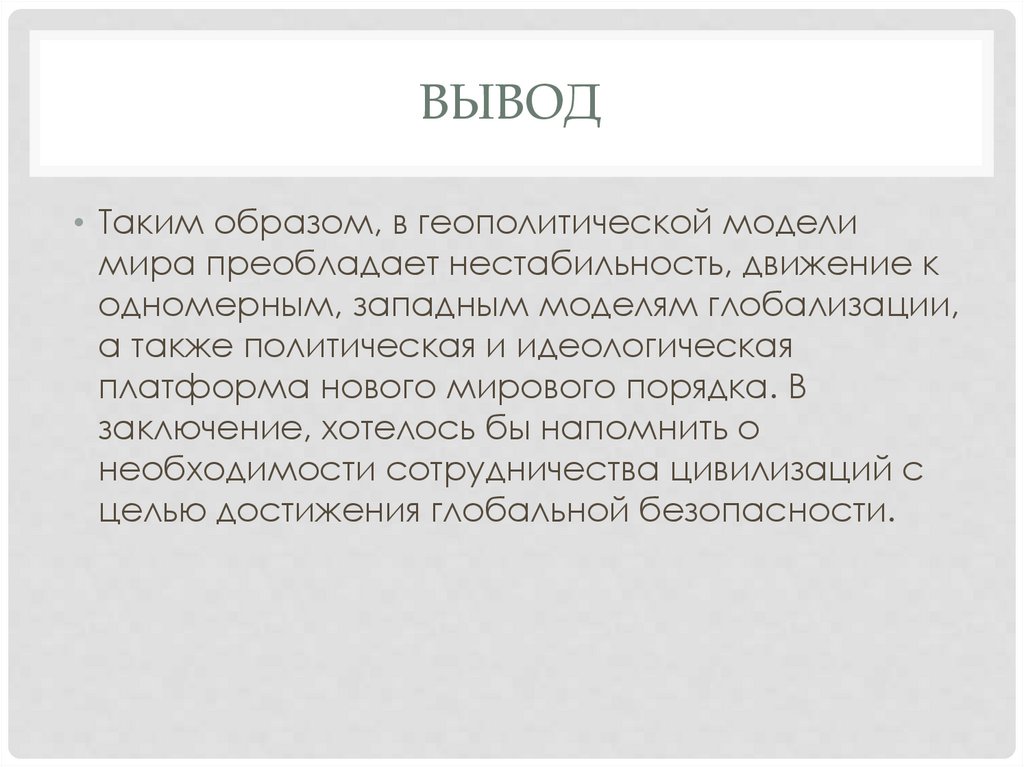 ВЫВОД• Таким образом, в геополитической модели