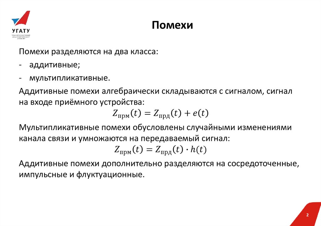 Аддитивные помехи алгебраически складываются с сигналом, сигнал