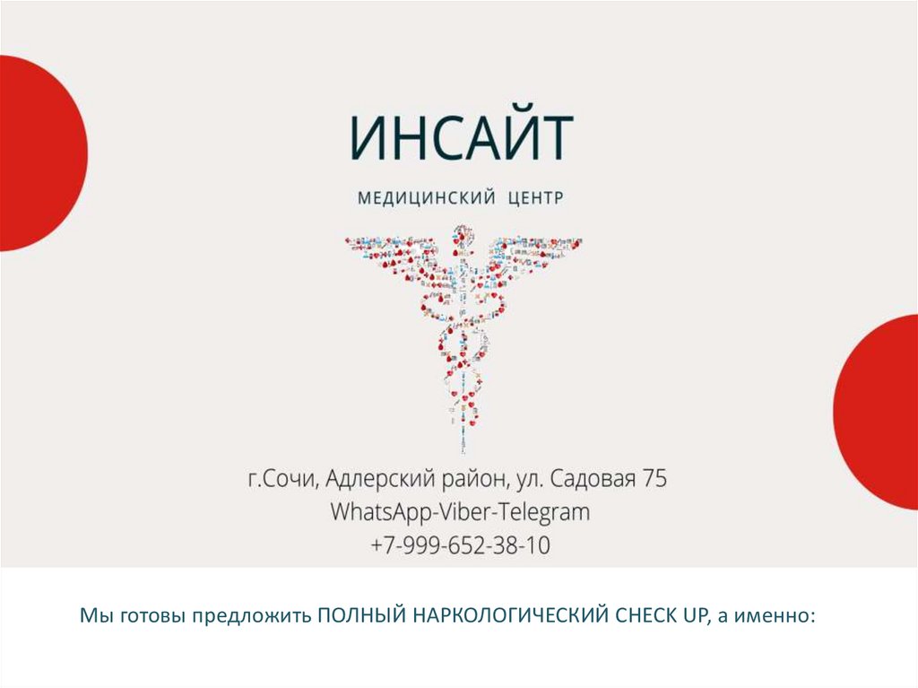 Мы готовы предложить ПОЛНЫЙ НАРКОЛОГИЧЕСКИЙ СHECK UP, а именно:2.
