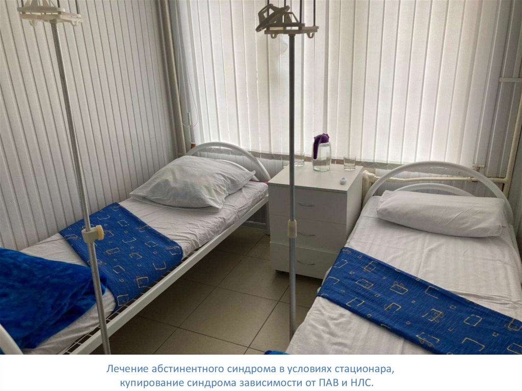 Лечение абстинентного синдрома в условиях стационара,купирование синдрома зависимости от ПАВ и НЛС.