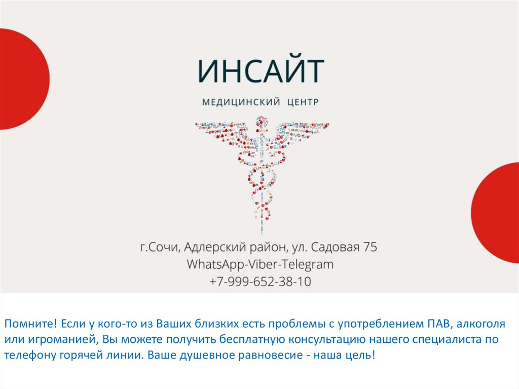 Помните! Если у кого-то из Ваших близких есть проблемы с употреблением ПАВ, алкоголяили игроманией, Вы можете получить бесплатную консультацию нашего специалиста по