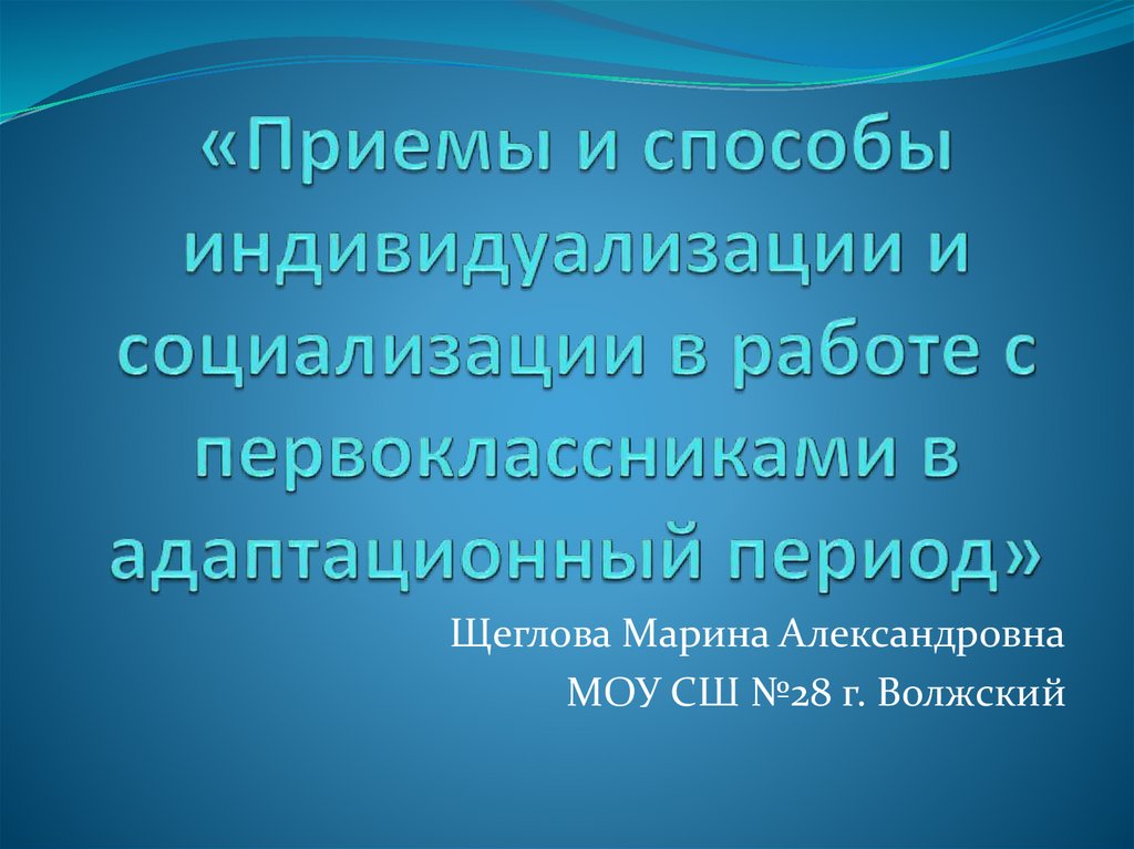 Приемы и способы индивидуализации и социализации в работе с первоклассниками в адаптационный период