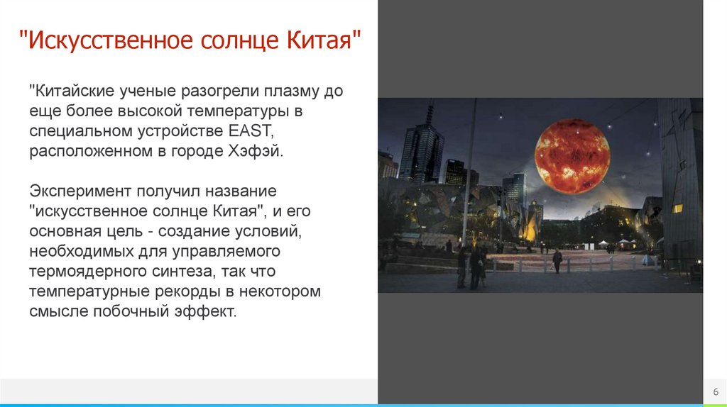 "Искусственное солнце Китая""Китайские ученые разогрели плазму до