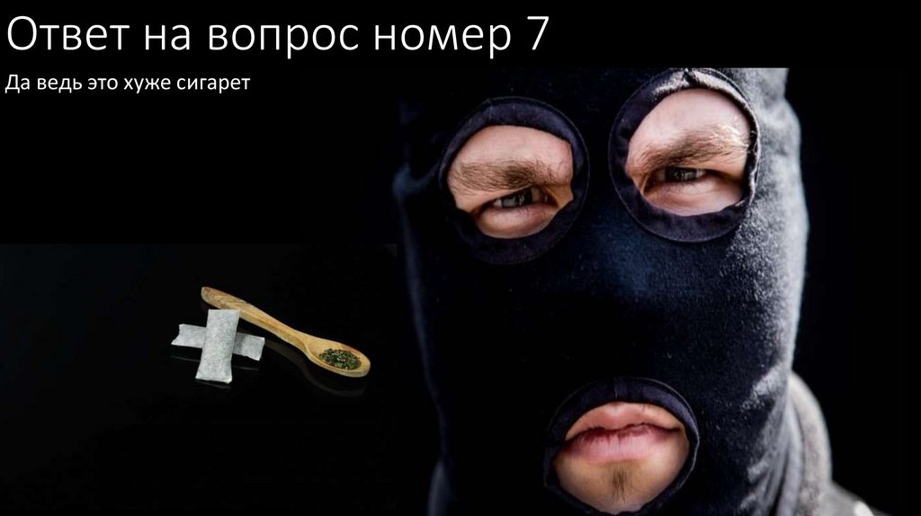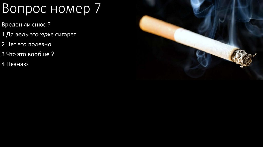 Ответ на вопрос номер 7Да ведь это хуже сигарет