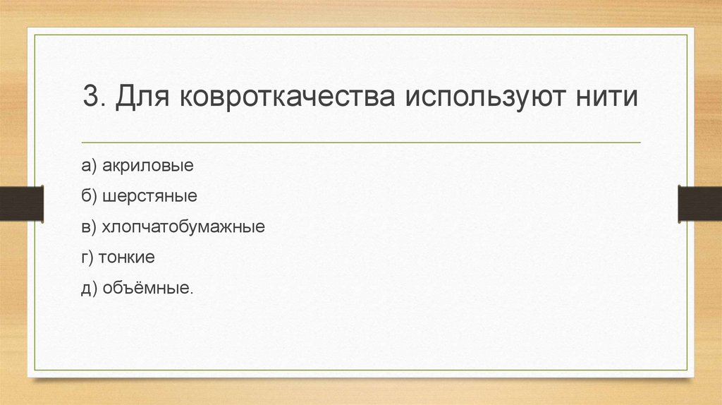 3. Для ковроткачества используют нитиа) акриловые