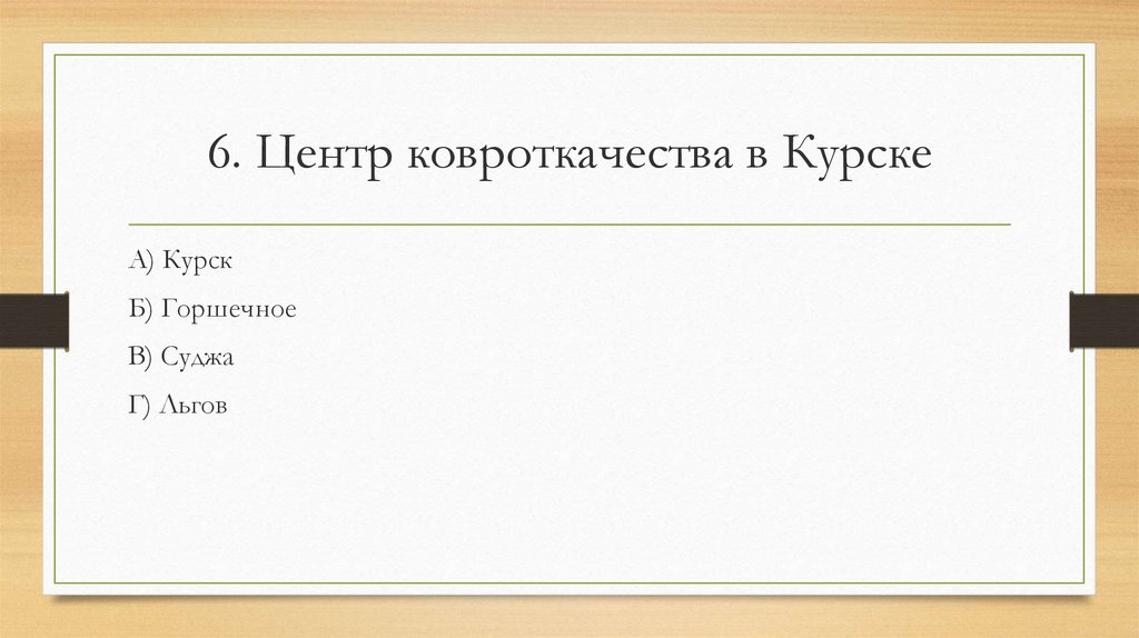 6. Центр ковроткачества в КурскеА) Курск